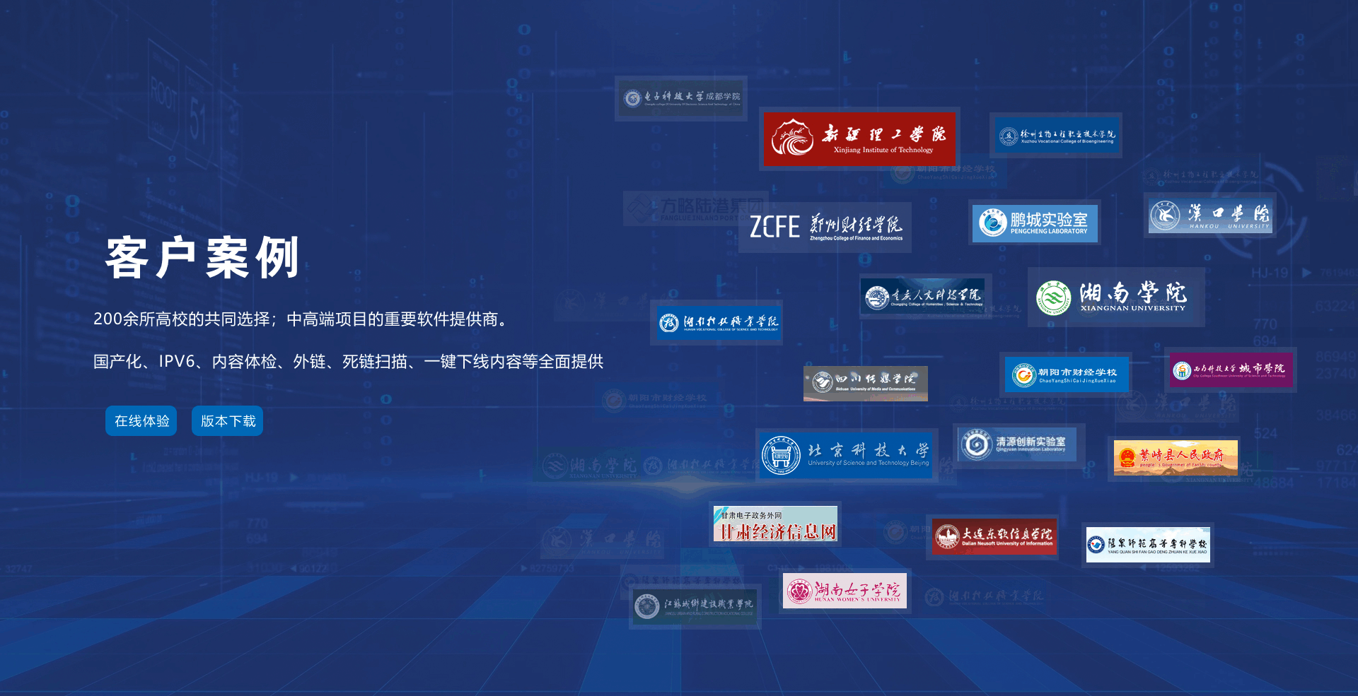 | 國家安全等保認證 | 數百個大型客戶每個季度掃描 | 動靜態分離部署 |